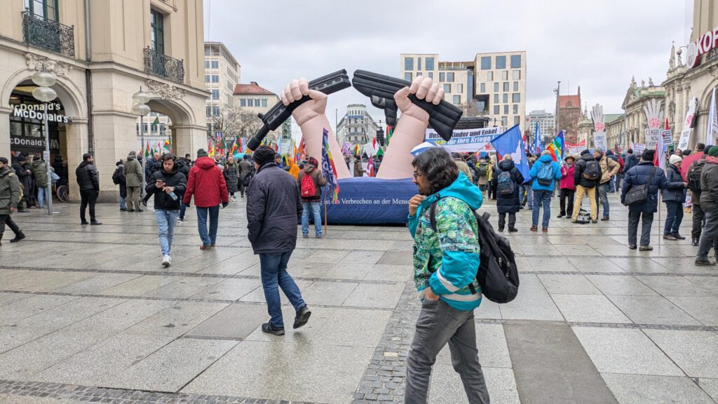 Unter diesem Slogan hat am Samstag, dem 14. Februar, das „Aktionsbündnis gegen die NATO-Sicherheitskonferenz“ zu Aktionen (Kundgebungen, Demonstration und Menschenkette) rund um das Tagungslokal der Kriegsstrategen in der Münchener Innenstadt aufgerufen.