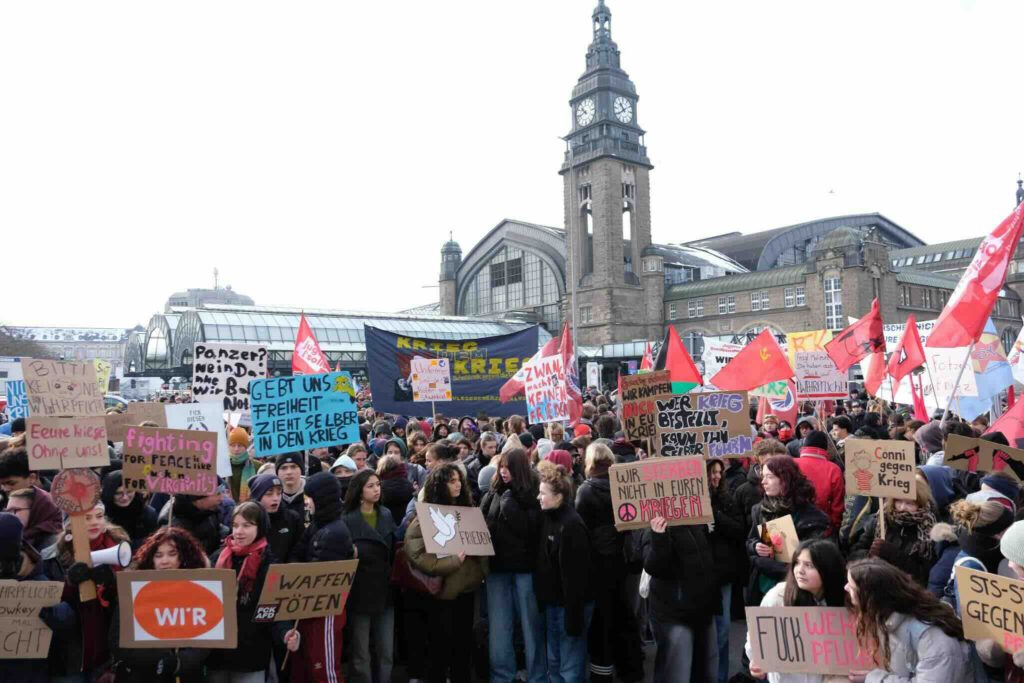Schüler und Schülerinnen von über 70 Hamburger Schulen trugen mit hunderten Plakaten und Bannern ihre Forderungen auf die Straße: „Wir führen eure Kriege nicht!“, „Wohnen statt Drohnen“, „Weiterdenken statt Panzerlenken“, „Uniformen sind das Problem im Stadtbild“, „Die Reichen wollen Krieg – die Jugend eine Zukunft!“, „Keiner will töten“, „Wehrpflicht? Ich wehr mich!“, „Wehrpflicht? Lowkey lass mal nicht“, „Wer Krieg bestellt, kann ihn selber führen“, „Wir wollen nicht sterben für ein Land was uns so leben lässt“, „Merz geh selber an die Front“. Bei der Abschlusskundgebung spielte der Rapper Hexer seinen neuen Song „Gewinner“ gegen die Wehrpflicht.
