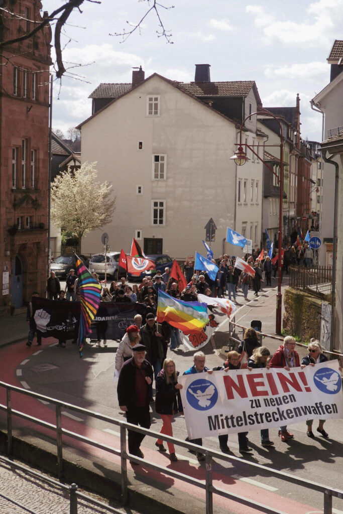 Bei den diesjährigen Ostermärschen standen insbesondere die Ablehnung der Wiedereinführung der Wehrpflicht, die drohende Stationierung von Mittelstreckenwaffen in Europa sowie die Forderung nach Waffenstillstand und Frieden insbesondere im Nahen Osten.